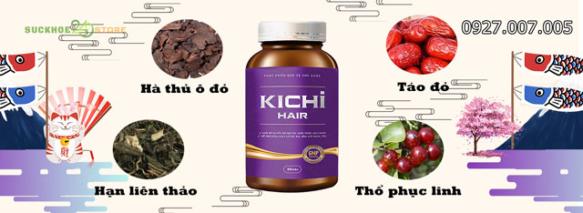 Kichi Hair hiện tại trên thị trường Việt Nam đang thuộc top những sản phẩm chăm sóc sức khoẻ tóc tốt nhất hiện tại, viên uống Kichi Hair chứa những thành phần chiết xuất từ thiên nhiên như hà thủ ô đỏ, thổ phục linh,… không chỉ mang lại lợi ích cao trong việc cải thiện sức đề kháng tóc, ngăn ngừa bị rụng tóc, giúp tóc mọc nhanh và dày hơn mà còn bảo vệ cho mái tóc, da đầu cũng như sức khỏe của người tiêu dùng.