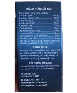 - Tăng cường sinh lực và ham muốn tình dục: Các thành phần như Dâm Dương Hoắc, Nhân Sâm và Cao Hàu Biển được kỳ vọng giúp kích thích sản xuất nội tiết tố nam tự nhiên, từ đó cải thiện ham muốn, mang lại cảm giác hưng phấn và sung mãn hơn trong đời sống tình dục.
